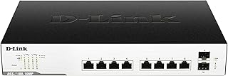 D-Link DGS-1100-10MP Switch EasySmart 8 Port PoE/PoE+ Gigabit, 2 Ports SFP - Budget 130 watts - 2 Ports SFP - 11' rackable - - Switch ONVIFF - Idéal pour Entreprise Administration et Réseaux Gérés