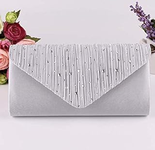 Générique Mariée Satin Pochette Mariage Soirée Sac à Main Bandouliere Chaine Diamanté Bal Femme - Argent