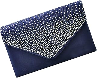 Satin Pochette Mariage Soirée Sac à Main Bandouliere Chaine Diamant Bal Sac à Main - Bleu Foncé