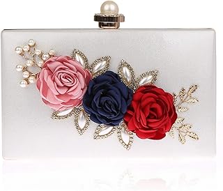 Femmes Satin Fleur Dîner Pochette Perle Perles De Soirée Sacs À Main Portefeuille Chaîne Sac à bandoulière pour Le Mariage De Mariée De Bal