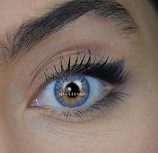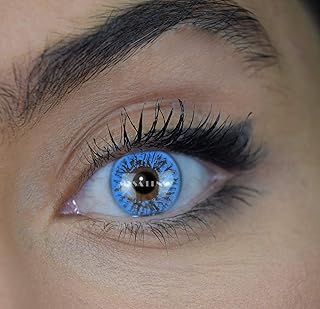 MYSALENS Lentilles De Contact De Couleur Fantaisie Crazy Lens 12 Mois saphir bleu S3-538 3T +Avizor Solution Multifonction 10ML Kit De Rangement Boitier Pince et applicateur Offert sans correction