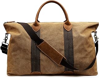 Sac de voyage en toile pour homme et femme - Grand sac à main de week-end avec housse de bagage, kaki (marron) - Newshows SM035C