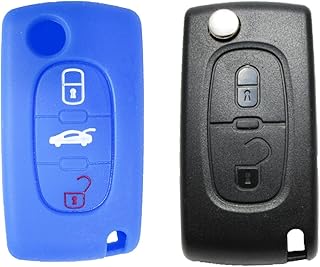 kaser Housse étui en Silicone pour Clé Peugeot Citroen – Coque Cover Porte-Clés 2 Boutons pour 207 307 407 308 C1 C2 C3 C4 Protection Télécommande Voiture (Bleu)