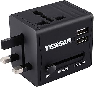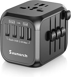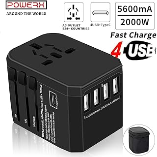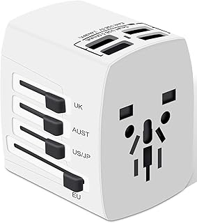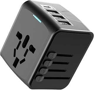 Amoner Adaptateur de voyage universel avec 4 ports USB et 1 type C adapté pour plus de 150 pays.