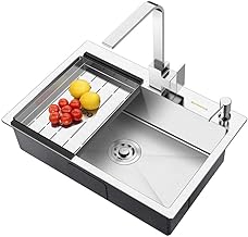 Outils de Cuisine Évier À une fente Cuisine 304 En Acier Inoxydable À Un Évier Lavabo Évier Dessus En Haut Et En Dessous De Bassin Épaissie Ensemble Profond 4 Pièces (Évier + Robinet + Drain + Tuyau E