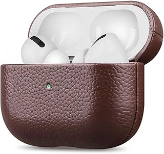 fooyin Handmade Series Étui en Cuir pour AirPods Pro, Protection Coque (Cuir de Litchi) Housse Compatible avec Apple AirPods Pro, Marron