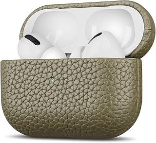 fooyin Handmade Series Étui en Cuir pour AirPods Pro, Protection Coque (Cuir de Litchi) Housse Compatible avec Apple AirPods Pro, armée Verte
