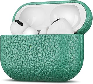 fooyin Handmade Series Étui en Cuir pour AirPods Pro, Protection Coque (Cuir de Litchi) Housse Compatible avec Apple AirPods Pro, Vert