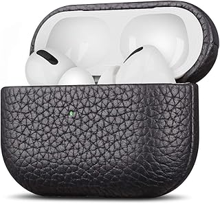 fooyin Handmade Series Étui en Cuir pour AirPods Pro, Protection Coque (Cuir de Litchi) Housse Compatible avec Apple AirPods Pro, Noir