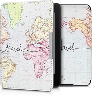 kwmobile Étui liseuse Compatible avec Amazon Kindle Paperwhite - Housse avec Rabat magnétique en Simili Cuir - Carte du Monde Voyage Noir-Multicolore