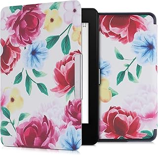 kwmobile Étui liseuse Compatible avec Amazon Kindle Paperwhite - Housse avec Rabat magnétique en Simili Cuir - Fleurs Aquarelle Multicolore-Champagne